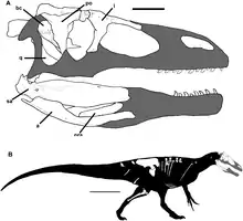 Murusraptor ("wall thief") is a genus of carnivorous megaraptoran theropod dinosaur from the Sierra Barrosa Formation, part of the Neuquén Group of Patagonia, in Argentina, South America. It is known from a single specimen that consists of a partial skull, ribs, partial pelvis, leg and other assorted skeletal elements.[1]