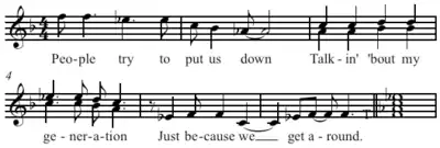 The song's lyrics comprise a distilled statement of youthful rebellion. The's song's melody and composition is considered a forebear to punk rock. One of the most quoted—and patently rewritten—lines in rock history is "I hope I die before I get old," famously sneered by lead singer Roger Daltrey.