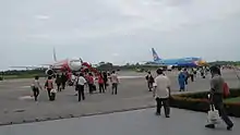 Passengers boarding Nok Air flight at Nakhon Si Thammarat Airport