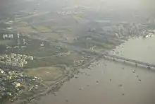Aerial view of ONGC bridge across Tapi river, Gujarat