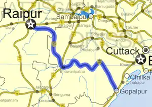 National Highway 59 (NH 59) is a National Highway in India that connects at last end Jaganathpur in Odisha. It covers a distance of 351.1 km (218.2 mi) of which 351.1 km (218.2 mi) is in Odisha.[1] [2]