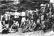With the out break of war on 3 September 1939, the National Military Reserve was activated. The majority of men in class I were immediately transferred to the Territorial Force, while the roughly 11,000 class II men were called up to provide garrison troops to defend ports and other key points in New Zealand.[3] In July 1940, the National Military Reserve was organised into independent squadrons of mounted rifles, independent companies and battalions of infantry. Further units were raised throughout 1940 and 1941 and by January 1942 the establishment of the National Military Reserve was 21,261. New Zealand was suffering from manpower shortages and such a large force could not be maintained. Consequently, 12 of the independent companies were disbanded, however a larger change soon followed. At the beginning of 1942 the New Zealand Home defence forces consisted of three organisations: the Territorial force, the National Military Reserve and the Home Guard. The government felt that this was too complicated and decided to simplify the home defence forces into two lines: the first line (i.e. the Territorial Force) of fitter men and the second line (i.e. the Home Guard). Consequently, the NMR was disbanded and its units transferred to the Territorial Force.[4] The Territorial force itself was stood down in 1943 and by April 1944 all the former National Military Reserve units had been disbanded.[5]