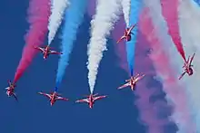 British orders and medals whose ribbons are in the national colours include the Royal Victorian Order,[3] the Royal Victorian Medal, the Queen's Gallantry Medal, and all the commemorative Coronation and Jubilee Medals since 1936.[4]