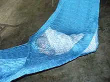 To avoid hauling a long length of loose twine through each knot, the twine is wound onto a netting shuttle or netting needle. This must be done correctly to prevent it twisting as it is used,[3] but makes net production much faster. A gauge – often a smooth stick – is used to keep the loops the same size and the mesh even. The first and last rows are generally made using a half-size gauge, so that the edges of the net will be smooth. There are also knot-free nets.