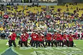 The drum major of the band uses a tewhatewha, a long-handled Māori club weapon in the shape of an axe, instead of a mace to give direction and keep time. More recently, a Haka display group was attached to the band.[16]
