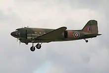 No. 512 Squadron was formed on 18 June 1943 from the Dakota element of 24 Squadron at RAF Hendon. It operated on supply routes from the United Kingdom to Gibraltar and Algeria to support the campaign in North West Africa. It also flew internal routes within the United Kingdom, and to the Azores and India. In February 1944 the squadron changed role and was transferred to No. 46 Group at RAF Broadwell; it was now a tactical Dakota squadron and started training glider towing and parachute dropping. Its first operation in the new role was a leaflet drop on 5 June 1944 over France, this followed intensive flying in and out of France including dropping parachutists at Arnhem. In fact, 512 Squadron can claim that they were the first planes over on D-Day as three Dakotas piloted by Fl Lt Hyde, W.O. James Proctor and a C Flight Flying Officer dropped a specialist team at 00.02 on 6 June to try to disrupt the Merville Battery before the main assault. It suffered losses during Operation Market Garden and was withdrawn to operate a transport service from Brussels in March 1945, although it was still involved in airborne operations associated with the Rhine crossing. After VE Day in July 1945 it extended its trooping routes to Palestine and the Middle East and moved to RAF Qastina in Palestine in October 1945, moving on by the end of the month to Gianaclis near Alexandria, Egypt. In December 1945 it moved to Bari, to operate scheduled flights within Italy. It returned to the United Kingdom in February 1946 and was disbanded upon arrival on 14 March 1946.[1][2][5]