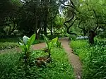 In the tropical greenhouse a variety of tropical and subtropical plants from all over the world are present. Some of the plants include a variety of food and medicinal plants including Coffea arabica (coffee), Camellia sinensis (tea), Vanilla planifolia (vanilla), Saccharum officinarum (sugarcane), Cinnamomum zeylanicum (cinnamon), Oryza sativa (rice), Theobroma cacao (cacao), Siphonochilus aethiopicus (wild ginger), Warburghia salutaris (pepper bark tree) and Piper nigrum (pepper). The tropical greenhouse also houses many other exotic plants from a variety of families, most notably the orchid family. Many indigenous epiphytic orchids such as Ansellia africana (leopard orchid) and Mystacidium capense, are grown there. Other interesting plants on display include Amorphophallus titanum (giant corpse flower), Hydnophytum formicarum (ant plant), Heliconia humilis (lobster plant), Nepenthes alata (pitcher plant) and Ravenala madagascariensis (travelers palm).[1] In 2010 Victoria cruziana (giant Amazon waterlily) was also successfully grown in the tropical greenhouse which drew numerous curious visitors to the Garden. This was the first successful recorded cultivation in many decades for South Africa.[7][8]