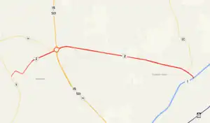 NC 2A was established in late 1941 running from NC 2 northeast of downtown Southern Pines, north of the town to US 1 in Manly.[14][15] In 1952, NC 2A was decommissioned and NC 2 took over its routing to US 1.[7][8][9]