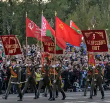 Russian Victory Day parades are organized annually in most cities, with the central military parade taking place in Moscow (just as during the Soviet times).[35][36] Additionally, the recently-introduced Immortal Regiment on May 9 sees millions of Russians carry the portraits of their relatives who fought in the war.[37] Russia also retains other Soviet holidays, such as the Defender of the Fatherland Day (February 23), International Women's Day (March 8), and International Workers' Day.[38]