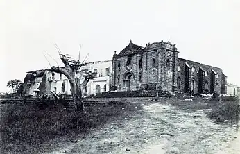 The church and monastery were both occupied by the Filipino revolutionaries in 1898–1899, and later by the American forces. As a result, the edifices were gutted by fire. The ruins were, for a while became a haunted place to the barrio folk. During the Japanese Occupation, the buildings were turned into garrison and headquarters. The structures suffered from the senselessness of both the Philippine–American War and the World War II