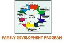 They have also implemented the Urban Family Development Program in 1991 to improve the nutritional status of depressed urban families through livelihood assistance and health and nutrition classes and services.