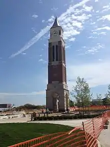 In 2013, the Oakland University Board of Trustees approved a $65 million investment in campus expansion and improvement projects. Completed in the fall of 2014, projects included: construction of a nearly $30 million student housing complex; dramatic enhancement of outdoor recreation and athletic fields; construction of a 1,240-space parking structure, and; construction of new headquarters for facility and grounds maintenance operations.[24] Longtime supporters of the university, Hugh and Nancy Elliott, made a donation to construct the Elliott Tower on the campus. The 151-foot carillon tower was completed in fall 2014 and houses the last bells to be cast by the Royal Bellfoundry Petit & Fritsen of the Netherlands.