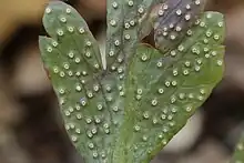 | Ochropsora anemones, formerly Ochropsora ariae, on leaf of Anemone nemorosa | |