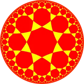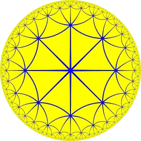 The octahedron is topologically related as a part of sequence of regular polyhedra with Schläfli symbols {3,n}, continuing into the hyperbolic plane.