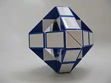 One can also divide the edges of an octahedron in the ratio of the golden mean to define the vertices of an icosahedron. This is done by first placing vectors along the octahedron's edges such that each face is bounded by a cycle, then similarly partitioning each edge into the golden mean along the direction of its vector. There are five octahedra that define any given icosahedron in this fashion, and together they define a regular compound. An icosahedron produced this way is called a snub octahedron.