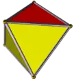 The regular octahedron can also be considered a rectified tetrahedron – and can be called a tetratetrahedron. This can be shown by a 2-color face model. With this coloring, the octahedron has tetrahedral symmetry.