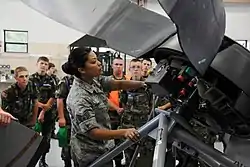 The Ohio Wing holds a cadet encampment annually. Serving as a weeklong training camp for cadets, the encampment involves instruction in discipline, teamwork, and leadership. Other activities involve instruction in drill and ceremonies, customs and courtesies, basic CAP knowledge and military tradition. Encampment attendance is a prerequisite for the Gen. Billy Mitchell Award. Senior members may also be awarded the ribbon for providing leadership at CAP this encampment. The encampment is held at Wright-Patterson Air Force Base in Dayton, Ohio.[6][7]