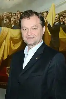According to Russian sources, Ponomaryov remained in Berdiansk after the beginning of the invasion and later moved to Crimea;[7] he re-emerged in Ukraine in January 2023, showing up in Kyiv.[7] In late 2021, it was reported that Ponomaryov holds Russian citizenship, and therefore is expected to lose his position as a people's deputy in 2023.[8] On 24 July 2023, the Security Service of Ukraine announced high treason charges against an opposition politician which Radio Free Europe/Radio Liberty identified as being Ponomaryov.[9]