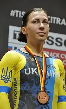 Olena Viktorivna Starikova (Ukrainian: Олена Вікторівна Старікова; born 22 April 1996) is a Ukrainian track cyclist. She represented her nation at the 2014 and 2015 UCI Track Cycling World Championships.[1]