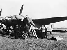 Following the Bostons, the pilots in the Mosquitos observed enemy aircraft approaching from the airfield. Squadron Leader D. Parry and Flight Lieutenant W. Blessing turned toward them.[46] They closed in a moment and soon were being fired upon. Banking and pushing throttles full on, they accelerated.[47] The Focke-Wulf 190 had a similar speed to the Mosquito.[lower-alpha 1] Parry went flat out, keeping an eye on his pursuers. Eluding his attackers, he was able to rejoin the attack. Blessing was chased for ten minutes, he got away but was too late to resume the mission and returned to base with his bombs.[48]