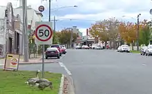 Orbost straddles the Princes Highway. A 567 metre bridge over the Orbost floodplain opened in November 1976.[8] The town was connected to Melbourne when the Gippsland railway line opened to Orbost station in 1916 principally carrying timber and farming produce. In the early days of the railway's operation dedicated passenger trains ran but these ceased by the 1930s. The line closed in 1987 when the line was cut back to Bairnsdale. The track infrastructure was dismantled in 1993/94.[9] The line traversed a mixture of farmland, hills and heavily forested country. It included numerous bridges, including the Stoney Creek Trestle Bridge, the largest of its kind in Victoria.[10] Public transport services are provided to the town by V/Line with road coach services from Batemans Bay, Marlo and Canberra to Bairnsdale that connect with train services to Melbourne.[11][12][13]