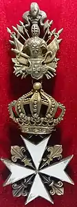 On January 20, 1817, the highest decree "On the Prohibition of Those Receiving the Order of Saint John of Jerusalem at the Present Time to Wear It" followed.[4] The decree was issued due to the fact that, through the mediation of the holder of the Grand Commander's Cross of the Order of Saint John of Jerusalem, the envoy of Serra de Capriola, several Russian citizens received this order shortly before the decree was issued. In the decree, the ban was motivated by the fact that the Russian Priory Order no longer exists.[lower-alpha 1] The decree did not contain a ban on wearing the order received during the existence of his Russian Priory.