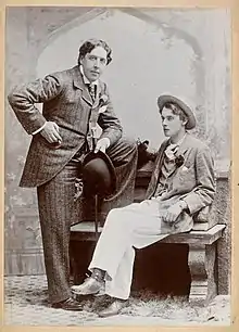Wilde left Portora with a royal scholarship to read classics at Trinity College, Dublin (TCD), from 1871 to 1874,[28] sharing rooms with his older brother Willie Wilde. Trinity, one of the leading classical schools, placed him with scholars such as R. Y. Tyrell, Arthur Palmer, Edward Dowden and his tutor, Professor J. P. Mahaffy, who inspired his interest in Greek literature. As a student Wilde worked with Mahaffy on the latter's book Social Life in Greece.[29] Wilde, despite later reservations, called Mahaffy "my first and best teacher" and "the scholar who showed me how to love Greek things".[24] For his part, Mahaffy boasted of having created Wilde; later, he said Wilde was "the only blot on my tutorship".[30]