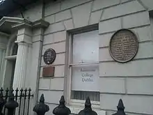 Wilde was baptised as an infant in St. Mark's Church, Dublin, the local Church of Ireland (Anglican) church. When the church was closed, the records were moved to the nearby St. Ann's Church, Dawson Street.[13] A Catholic priest in Glencree, County Wicklow, also claimed to have baptised Wilde and his brother Willie.[14]