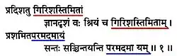 The first sloka in the first chapter of Yudhishthiravjaya by Pattathu Vasudeva Bhattathiri showing the yamaka-s.