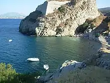 Palaiokastro (Greek: Παλαιόκαστρο) is a coastal village and a community in the municipality of Malevizi. 9 km west of Heraklion on the island of Crete. In 2011 Palaiokastro had a population of 255 for the village and over 1000 of people that have their country house. It is situated in front of a 70 meter long pebbled beach leading to a cove with rapidly deepening waters that are protected from the prevailing northerly winds. On the southern end of the beach rises a steep calcareous rock. During the Venetian occupation of Crete extensive fortifications were built on this rock, housing cannons that secured the bay of Heraklion. Ruins of the fortress walls survive until today.