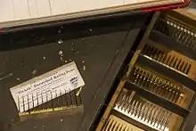 A paper-ruling machine is a device for ruling paper. In 1770, John Tetlow was awarded a patent for a "machine for ruling paper for music and other purposes."[1] William Orville Hickok invented an "improved ruling machine" in the mid-19th century.[2] As the device is designed for drawing lines on paper, it can produce tables and ruled paper.