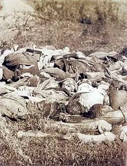 Solano López, believing that he could deal a fatal blow to the Allies, launched a major offensive with 25,000 men against 35,000 Allied soldiers at the Battle of Tuyutí on 24 May 1866, one of the bloodiest battles in Latin-American history.[46] Despite being very close to victory at Tuyutí, López's plan was shattered by the Allied army's fierce resistance and the decisive action of the Brazilian artillery.[47] Both sides sustained heavy losses: more than 12,000 casualties for Paraguay versus 6,000 for the Allies.[48][49]