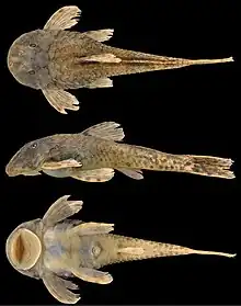 Pareiorhina hyptiorhachis[2] is a species of catfish in the family Loricariidae. It is native to South America, where it occurs in the basins of the Pomba River and the Paraíba do Sul in Brazil. It is typically found in small streams with moderate to fast flow, margins covered in aquatic vegetation, and a substrate composed of rocks and sand. It is known to occur alongside the species Geophagus brasiliensis and Neoplecostomus microps, as well as members of the genera Astyanax, Characidium, Harttia, Imparfinis, and Trichomycterus. The species reaches 3.9 cm (1.5 in) in standard length.[3]