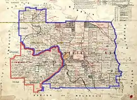 ![]() 1924 cadastral map with highlights: Boundary of Majura parish since 1909 The eastern tip of the ACT, which was formerly part of the parish; transferred to the Commonwealth in 1909 | |||||||||||||||