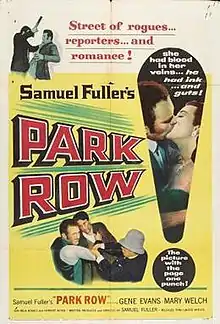 Park Row is a 1952 American drama film starring Gene Evans as a New York City journalist who founds a new type of newspaper in the 1880s and Mary Welch as the established publisher who opposes him. It was written, directed, produced and financed by Samuel Fuller, himself a New York reporter prior to turning to filmmaking. It was his favorite film,[3] though it did not do well at the box office.
