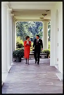 In a freak accident, a television studio partition toppled and struck her in early January 1982 during an interview at WESH-TV in Winter Park, Florida.[12][13] While not life-threatening, the mishap aggravated a back injury she suffered years before in an automobile collision and caused constant pain which plagued her during her years in Washington. Senator Strom Thurmond, in his capacity as President pro tempore, gave her the use of a room in the Capitol building for a hospital bed where she found pain relief under weighted traction during breaks between congressional activities.[14]