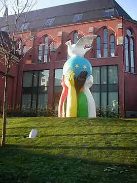 Peace dove statue in Lomé, Togo, Africa. The dove and the olive branch are the most common symbols associated with peace.[1]