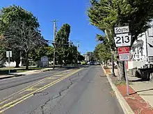 Pennsylvania Route 213 (PA 213) is a 6.95-mile-long (11.18 km) state highway in Bucks County, Pennsylvania. The route runs from PA 532 in Feasterville, which is located in Lower Southampton Township, north to U.S. Route 1 Business (US 1 Bus.) in Middletown Township, near the Oxford Valley Mall. PA 213 is signed as a north-south route but it actually travels east–west through its route, with the northern terminus being well east of the southern terminus but only slightly further north. Along the way, PA 213 passes through the borough of Langhorne and has intermediate junctions with PA 413 in Langhorne and US 1 in Middletown Township. The westernmost part of PA 213 was originally chartered as the Bridgetown and Feasterville Turnpike in 1844. In 1913, the eastern portion of present-day PA 213 became a part of the route for the Lincoln Highway, being bypassed in 1923. PA 213 was designated onto its current alignment in 1928.