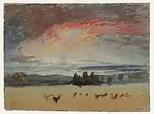 It was the 3rd Earl of Egremont, George O'Brien Wyndham (1751–1837), who solidified the house's reputation as one of fine art. He inherited the house in 1763 and began what has been termed a 'Golden Age' of Petworth when he expanded his collection of contemporary art and expanded and changed the house in order to display it best, in particular through the addition of the North Gallery in 1824–5.[9] He was patron to many contemporary artists including J. M. W. Turner and John Constable who were frequent guests to the house and painted the house and its parkland frequently - this has more recently helped inform restorations to the house and parkland.[9][5]
