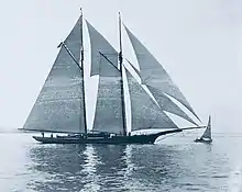 The Phantom was a centerboard schooner built in the summer of 1865 by Joseph D. Van Deusen and owned by yachtsman Henry G. Stebbins and part of the New York Yacht Squadron. She was constructed on the same model as the flagship yacht Sylvia. She was 123.3 tons burden, and 92 length on deck. She was painted a deep maroon.[1][2]