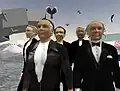 The 'Karlsruhe Kreis' (left-to-right): Boris Groys (cultural theorist), Peter Weibel (artist), Beat Wyss (art historian), Peter Sloterdijk (philosopher, Wolfgang Rihm (composer) avatars on ZKM 'YOUniverse' Island in Second Life.