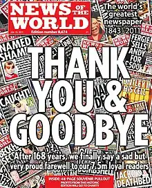 - ↑ "News of the World to close amid hacking scandal". BBC News. 7 July 2011.