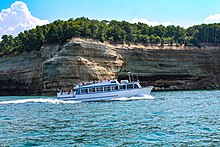 Pictured Rocks National Lakeshore offers a variety of recreational opportunities for visitors year-round, including hiking, back-country camping, kayaking, boating, swimming, scuba diving, fishing, and winter activities including snowmobiling, ice climbing, and cross-country skiing.[18] The beautiful scenery, and variety of opportunities to enjoy the park attract significant visitors, including a record 800,000 in 2018.[19]
