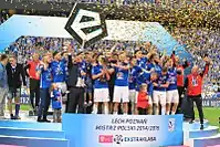 2. Lech Poznań won the championship after two final day games (Wisła Kraków vs Legia Warsaw 0–6; ŁKS Łódź vs Olimpia Poznań 7–1) had been cancelled due to the never proven allegations of "unsportsmanlike conduct during the game".[19]