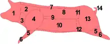 Cuts of pork including #14, pig tail, are pictured