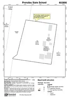 1. 1 2 3 4 5 6 7 8 9 10 11 12 13 14 15 16 17 18 19 20 21 22 23 24 25 26 27 28 29 30 31 32 33 34 35 36 37 38 39 40 41 "Prenzlau State School (entry 602856)". Queensland Heritage Register. Queensland Heritage Council. Retrieved 11 February 2018.