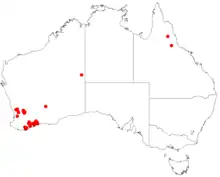 This mintbush grows on sandy rises, sandplains and on granite outcrops in the Avon Wheatbelt, Esperance Plains, Jarrah Forest, Mallee and Swan Coastal Plain biographic regions of Western Australia.[2][3]