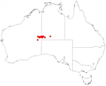 This mintbush grows on rocky scree slopes in the Central Ranges bioregion near the border between the Northern Territory and Western Australia.[2][3]