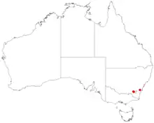 - 1 2 3 Conn, Barry J.; Wilson, Trevor C. (2015). "Two new species of Prostanthera (Lamiaceae) in New South Wales". Telopea. 18: 466–470. doi:10.7751/telopea9164.