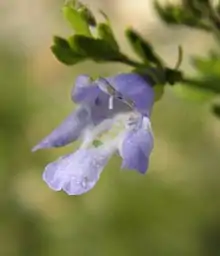 Prostanthera parvifolia is a species of flowering plant in the family Lamiaceae and is endemic to Queensland. It is an upright shrub with small, pale green leaves and mostly deep mauve flowers.